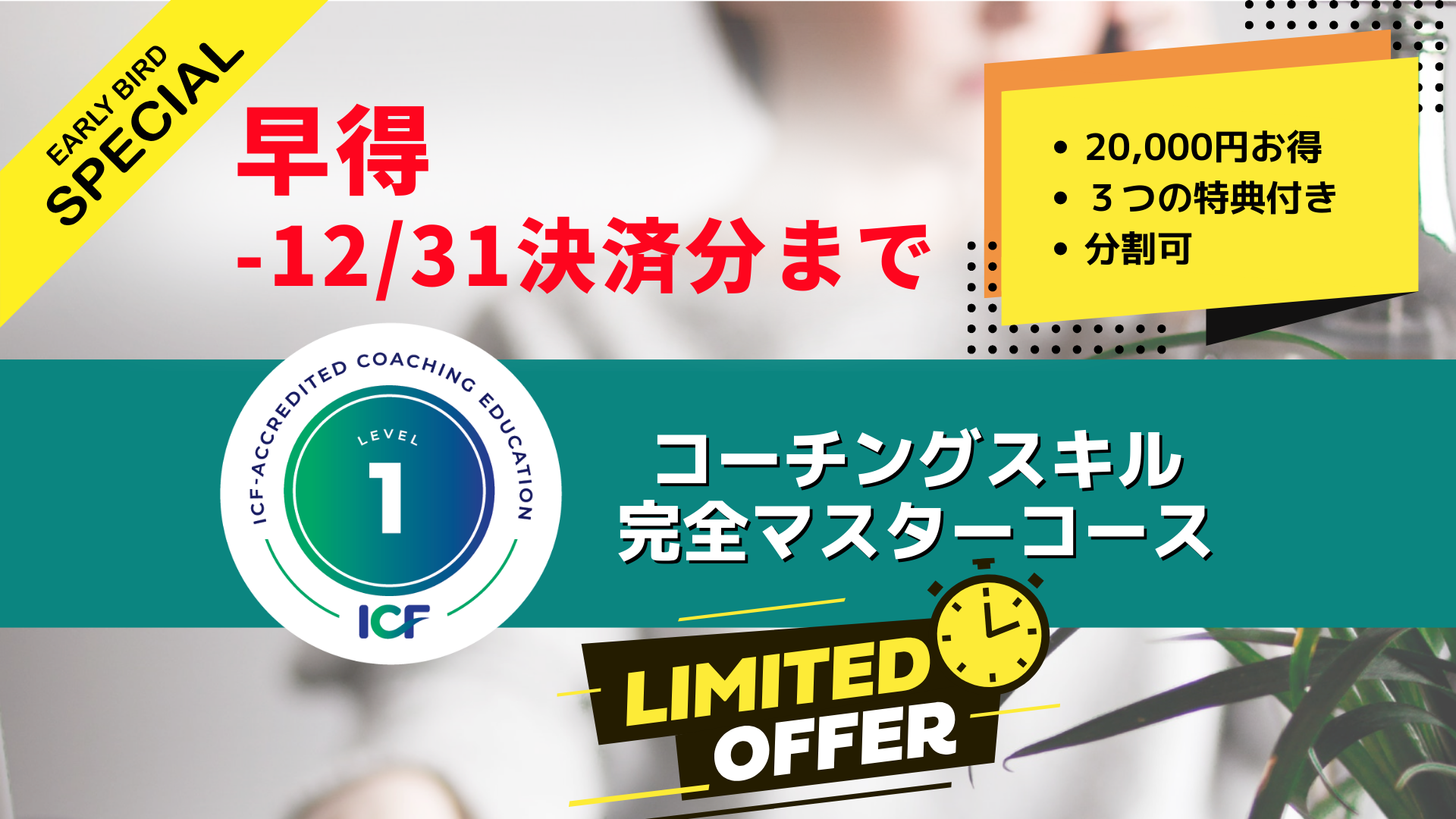 ICFに申請するために必要な”ACC修了認定証”を取得するための「全ての費用」が含まれています(10時間メンターコーチング・修了認定試験料金も含みます)